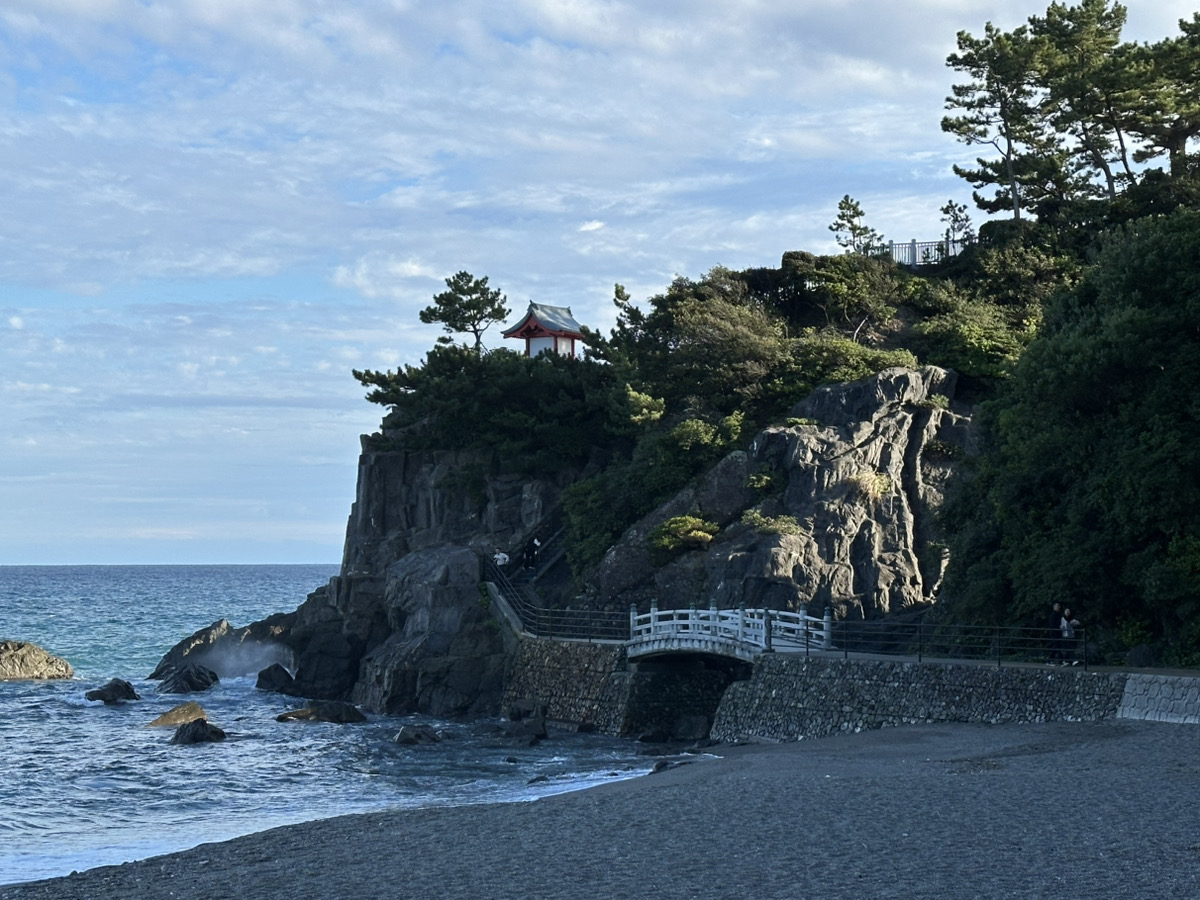 確かに波は荒く、岩にも水しぶきを上げてぶつかっていて、突然の高波があるらしく、砂浜へもあまり行く人はいませんでした。
