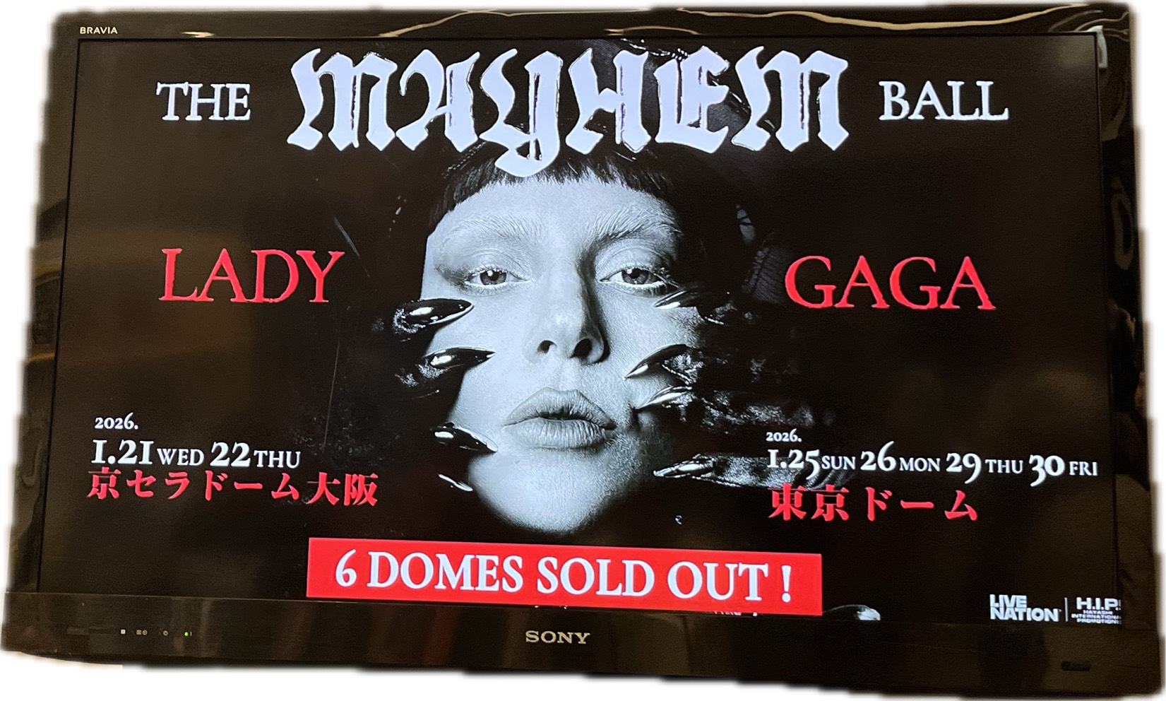 ステージ両側のスクリーンには来場者からGAGAさまへのメッセージや写真が映されていて、時々GAGAさまから返信が届いたり…