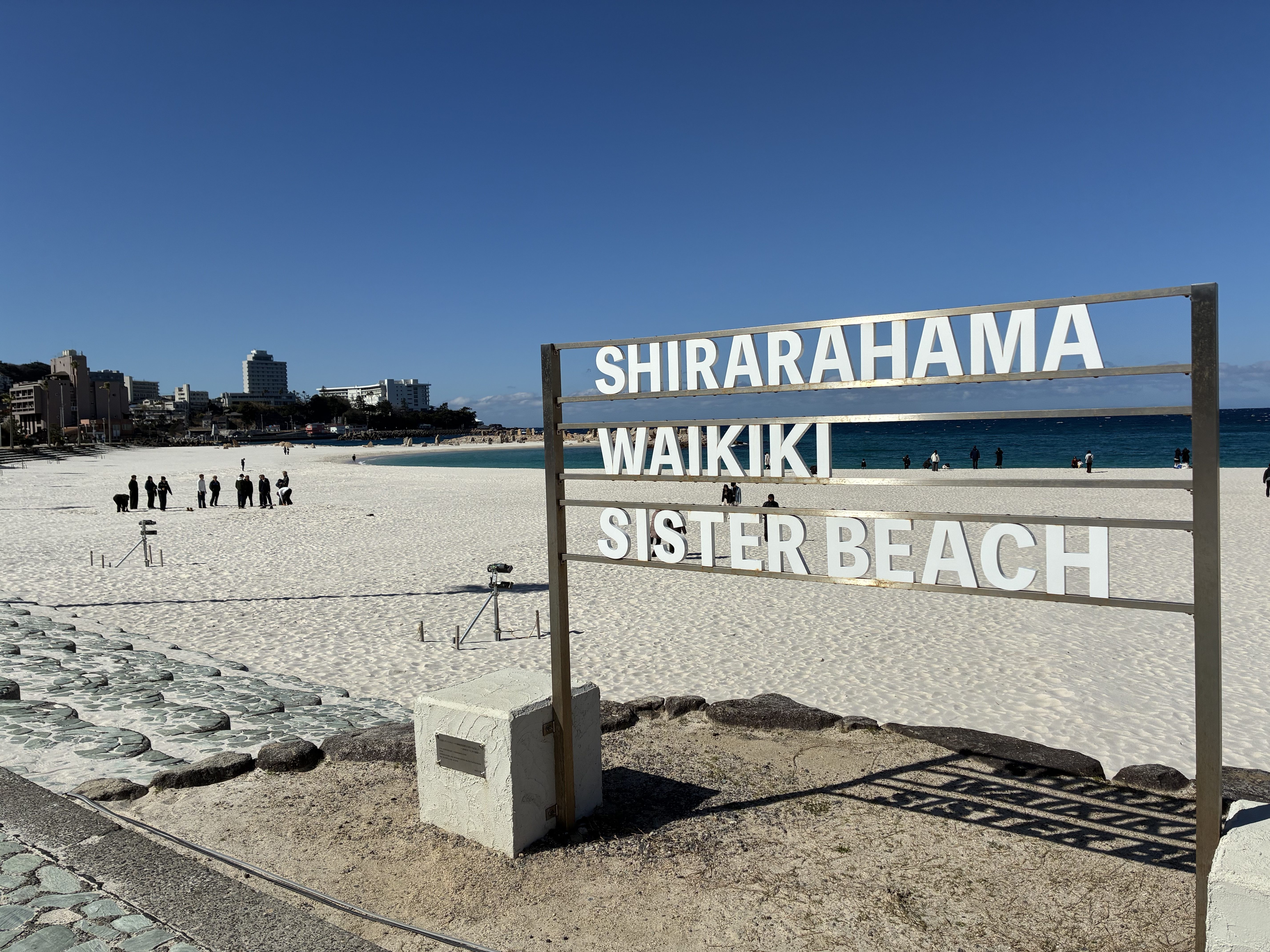 白浜は、ワイキキから白い砂を持ってきているらしく、とても綺麗でした。シラハマではなく、『シララハマ』という海岸名だという事を初めて知りました!