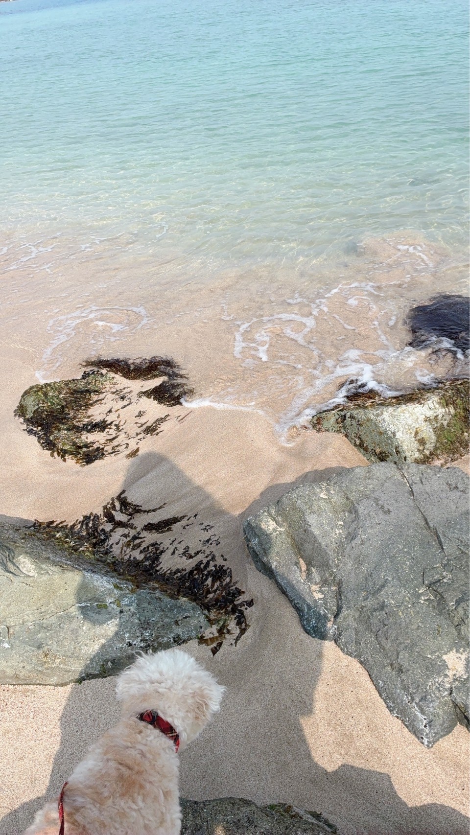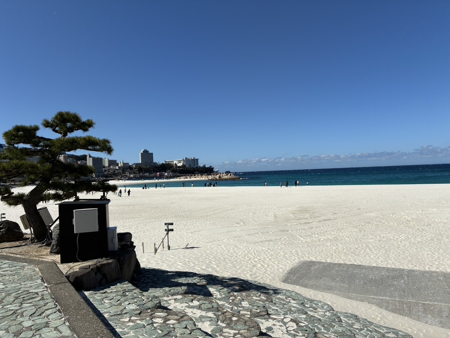 湘南海岸の黒砂で慣れているので、真っ白な砂浜と海とのコントラストに目を奪われました☆とてもきれいに整えられていてワンコは遊歩道だけでしたが、お散歩も気持ちよかったです。